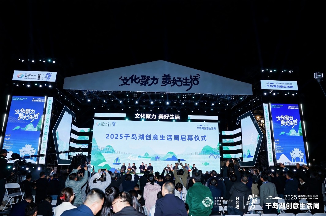 十月的千岛湖,湖水澄碧如镜,远山层林尽染。10月23日晚,千岛湖秀水广场在璀璨的激光与悠扬的乐曲中,迎来了以“文化聚力 美好生活”为主题的2025千岛湖创意生活周。这场已成功举办三届的文化盛会,今年以更丰富的内涵、更开放的姿态,成为第十九届杭州文博会规模最大的分会场。在接下来的五天时间里,千岛湖将以全域为舞台,通过文创展览、文艺展演、主题活动、美食市集、工坊体验等多元形式,为市民和游客呈现一场融合传统与现代的文化盛宴。