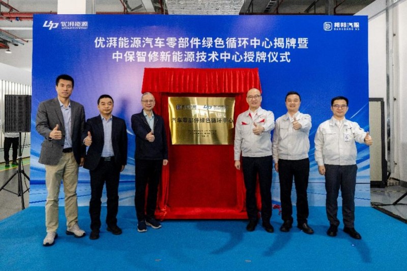 仪式上,人保金服、人保财险广东分公司、广汽集团、邦邦汽服和优湃能源相关领导及嘉宾共同为邦邦汽服x优湃能源汽车零部件绿色循环中心揭牌,并举行了中保智修新能源技术中心的授牌仪式。双方一致表示,两大中心创新“保险+再制造+电池维修”的模式,不仅是汽车后市场与金融保险融合典范,也将为中国汽车产业绿色、可持续的高质量发展注入强大动力。