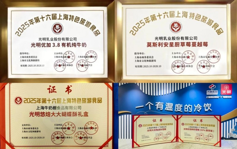 近日,第十六届上海特色旅游食品名单正式揭晓。光明优加3.8有机纯牛奶、光明莫斯利安星厨草莓蔓越莓酸奶、光明大白兔迷你雪糕、光明优倍鲜奶雪糕(53%醇享版)和光明悠焙大大蝴蝶酥礼盒成功入围,为这张“上海美食名片”再添优质选择。