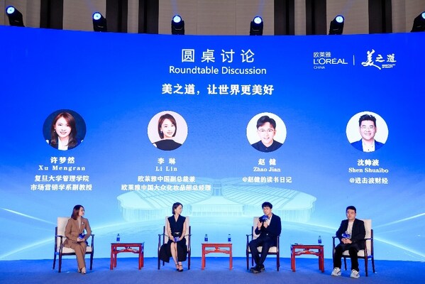 “美之道,让世界更美好”圆桌讨论于中外品牌论坛上举办。欧莱雅中国副总裁兼欧莱雅中国大众化妆品部总经理李琳,复旦大学管理学院市场营销学系副教授许梦然,知名网络读书博主赵健,以及“进击波财经”主理人、财经作家沈帅波齐聚一堂展开深度对话,共同探讨了美好消费趋势下,品牌所面临的挑战和机遇。
