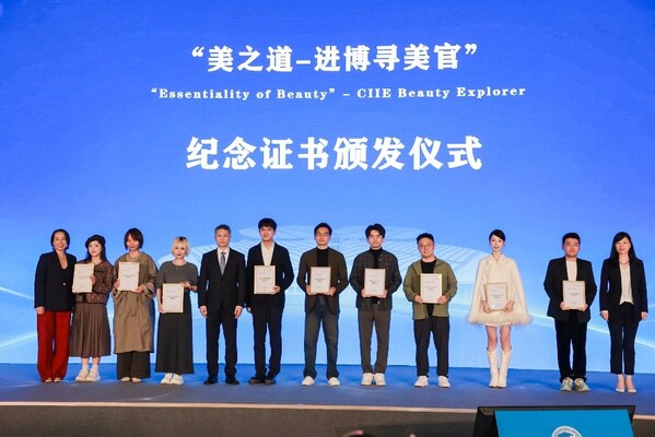 中国国际进口博览局副局长李国清、新华社上海分社党组成员金丽莉、欧莱雅北亚及中国公共事务总裁兰珍珍,共同为受欧莱雅邀请参与本次活动共创的9位创作者代表,授予“美之道—进博寻美官”纪念证书,以肯定他们在传播美与进博故事方面做出的积极贡献。