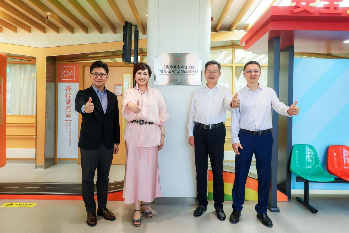 中国社会福利基金会理事长詹成付、上海市残疾人联合会副理事长戴光铭、香港兴业国际租赁及管理总经理兼兴业太古汇联席总经理丁瑞芳,香港兴业国际业务拓展及市务总经理王泽明共同为项目揭牌。上海市养志康复医院党委书记翟华、上海拥爱公益服务社社长马駸駸、同济大学视觉创意学院副系主任梁靖等出席见证。