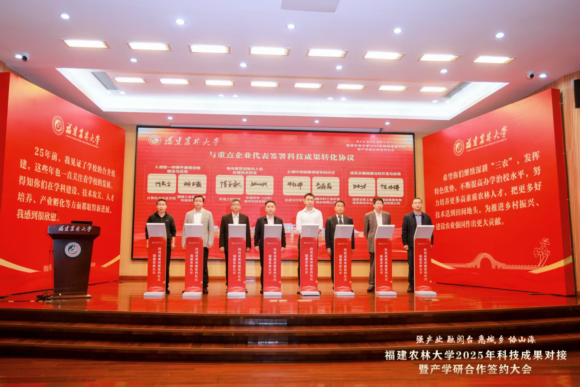 11月11日上午,福建农林大学成功举办“2025年科技成果对接暨产学研合作签约大会”。会上, “FAFU产学研智联AI平台”正式上线,并与中诺环宇(山东)航空科技有限公司签署了工业重载无人机研发重点成果转化协议,同时发布了多项低空经济中“硬核”成果,展现了学校服务产业与低空经济的强劲动能。省科技厅、省农业农村厅、省教育厅及地方政府领导、相关企业代表等180余人参加了活动。