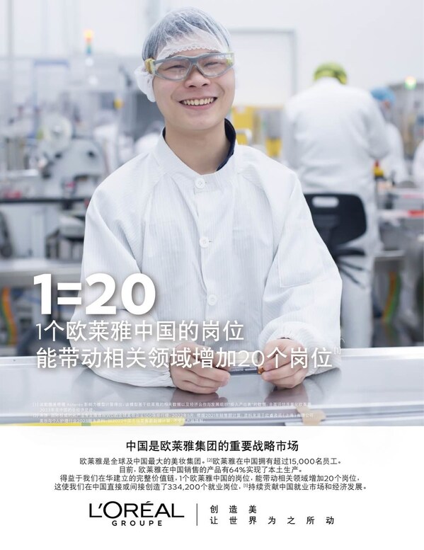 根据法国独立经济咨询公司Asterès测算,欧莱雅中国直接或间接提供就业岗位超33万个,相当于每一个欧莱雅中国的岗位,可以带动其他领域新增20个岗位,8倍于中国全行业平均就业乘数。