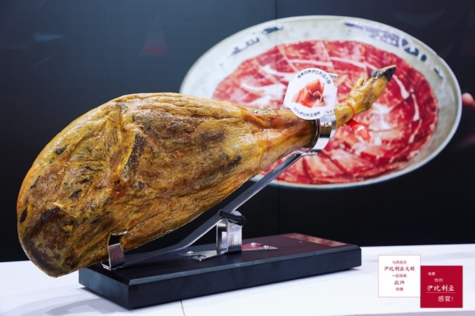 同时,展区也成为了“唤醒你的伊比利亚感官”推广项目的展示平台。这一持续了三年的推广项目由伊比利亚猪肉产业联合组织(ASICI)发起,欧盟联合资助,旨在中国市场进行伊比利亚火腿的推广与传播。