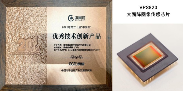 2025年“中国芯”集成电路产业促进大会暨第二十届“中国芯”优秀产品征集结果发布仪式于11月13日-14日在珠海横琴举行。VPS820大面阵图像传感芯片从参选的全国411款芯片产品中脱颖而出,荣获“中国芯”优秀技术创新产品奖项。