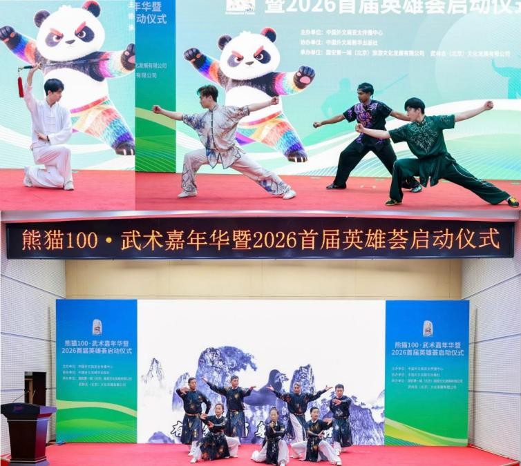 中国外文局亚太传播中心总编辑赵珺在致辞中表示:“‘十五五’规划建议明确提出‘文化繁荣兴盛是中国式现代化的重要标志’。中国外文局亚太传播中心发起举办‘熊猫100·武术嘉年华暨2026首届英雄荟’活动,创新融合熊猫与武术两大文化标识,旨在搭建一个集体育竞技、文化展示、产业合作与国际交流于一体的综合性平台,希望能够实现三大愿景:一是以武术为桥,弘扬中华优秀文化,彰显人类共同价值;二是以熊猫为媒,构建国际交流新平台,增进理解与认同;三是以内容为根,打造武术传播新生态,拓展影响边界,推动武术文化国际传播迈入新阶段。”
