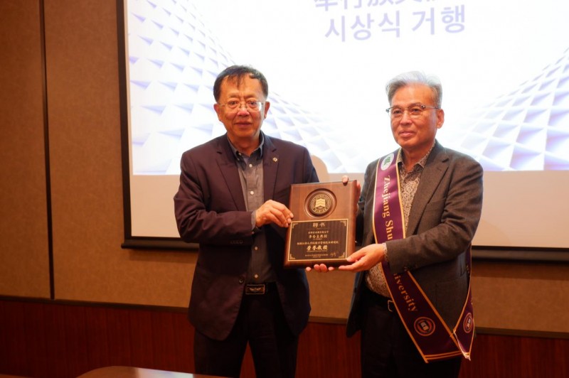 为实质性推进两校的研究与合作,会议期间举行了聘任仪式。浙江树人学院IDMT数字管理技术研究院,聘任京畿大学国际交流处副处长刘子阳担任该院副院长、特聘教授。同时,IDMT数字管理技术研究院一并聘任京畿大学校长李崙圭、副校长朴暎鎮、国际交流处处长陈昌炫、产学研团副团长俞昶榮为研究院特聘教授。