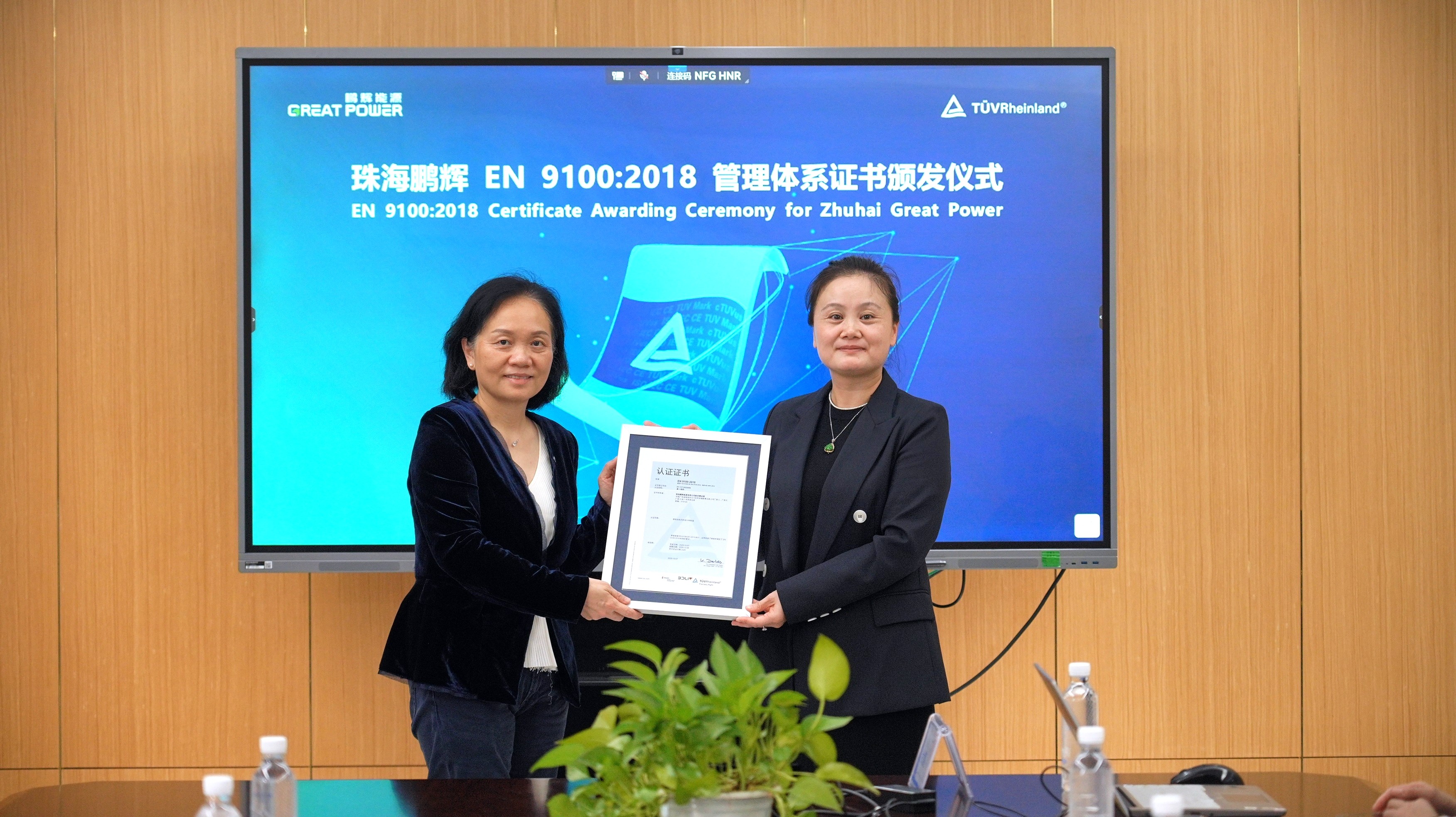 同时,TüV莱茵大中华区管理体系认证副总裁郑萍在致辞中高度评价了鹏辉能源的表现:“航空航天业作为高精尖领域的代表,对上下游企业的产品性能和质量管理体系有着极高的要求。鹏辉能源珠海基地在项目中展现出高度的执行力与技术能力,特别是在企业韧性和精细化管理方面令人印象深刻,完全符合国际航空航天的高标准要求。”