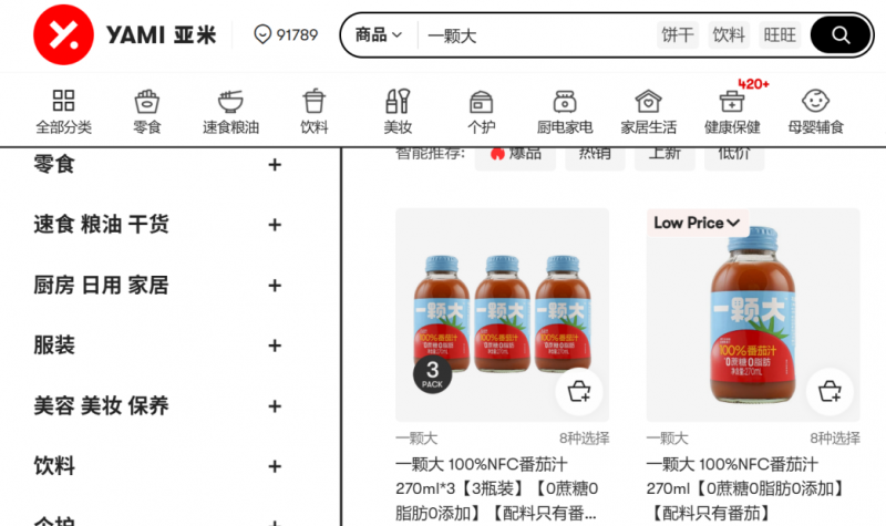 值得一提的是,一颗大™的爆款产品100%NFC番茄汁,在今年双十一期间登上了天猫超市原味番茄汁热销榜TOP1、天猫原味番茄汁热销榜TOP3;并荣登Maigoo买购网番茄汁十大品牌榜中榜TOP1。此外,一颗大™100%NFC红&黄番茄汁也在近期获得了低GI产品认证。