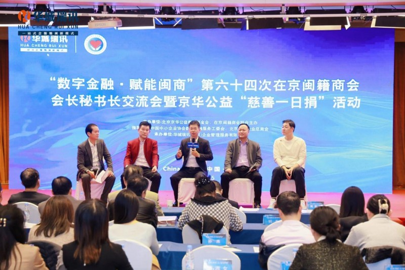 11月15日下午,一场政商学界精英汇聚的盛会在北京举行。由北京京华公益事业基金会、在京闽籍商会联合主办,中国中小企业协会数字金融服务工作委员会、北京福建企业总商会作为指导单位,华城瑞讯(北京)企业管理服务有限公司独家承办的数字金融赋能闽商发展暨华城瑞讯“企航金鼎计划”发布活动,以高规格阵容与前瞻性议题,吸引了广泛关注。60余家在京闽籍及跨区域商会负责人、25家在京品牌银行代表,还有学者专家共同见证了这场数字金融与实体经济深度融合的盛会。