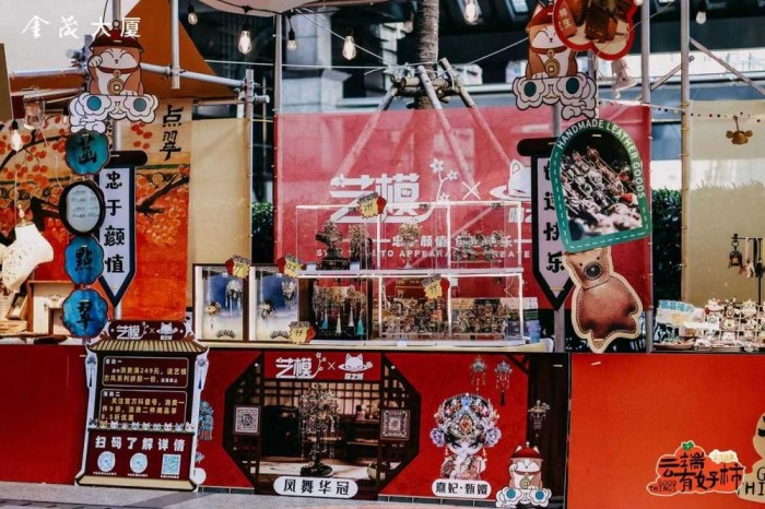 本次市集以“文创+非遗”为文化内核,巧妙运用“好柿”这一寓意吉祥传承美好期许的象征,在金茂大厦4号门外打造出一条充满诗意的国风长廊,希望将连绵好事带给每位来宾。设计上融合传统元素与现代空间理念,让大厦的摩登建筑质感与国风传统韵味自然呼应,既保留了城市地标的精致格调,又营造出松弛惬意的社交氛围,为空间注入温润的人文气息。这种场景融合旅游观光、都市白领、大众消费者等多元客群游逛购物打卡需求,让地标空间的消费潜力得到充分释放。