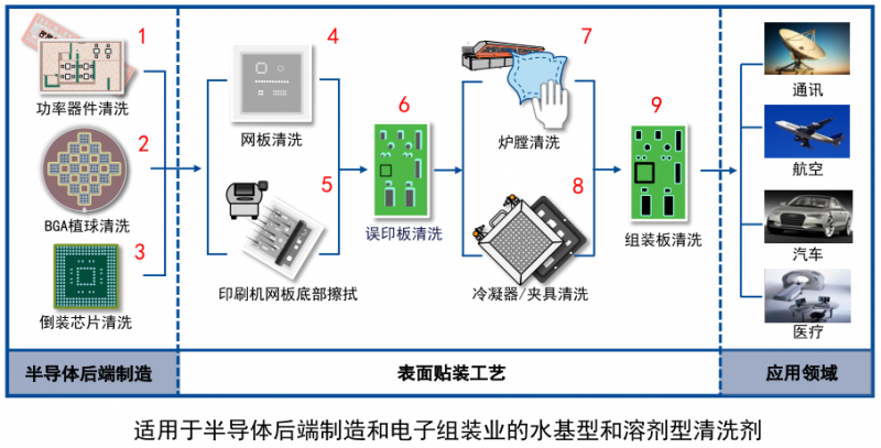 (b)后道焊接助焊剂清洗(水基, 单溶剂,双溶剂, 真空气象溶剂,手工清洗)