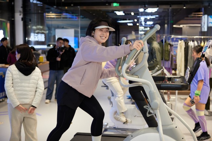 跑友们在浙体云品体验麦瑞克智能健身设备
