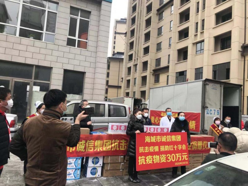 2020年新冠疫情暴发初期,诚信集团第一时间向鞍山市和海城市红十字会捐款27万多元物资,口罩、防护服、消毒液等紧缺物资被迅速送往抗疫一线。更令人动容的是,2022年3月海城疫情防控形势严峻时,集团将万奕酒店无偿支援给政府作为隔离酒店,并组织员工成立志愿队,承担起物资配送、环境消杀等任务。