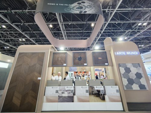 作为中东乃至全球范围内极具影响力的建材行业盛会,迪拜建材展不仅是展示行业创新成果的核心窗口,更是连接国际市场、促进全球商贸合作的重要桥梁。此次参展,书香门地集团精心打造了兼具东方韵味与现代奢雅感的展位空间,将「arte mundi」艺术地板系列的独特质感与艺术张力完美呈现,营造出沉浸式的美学体验空间,吸引了众多国际采购商、行业伙伴的驻足关注与深度交流。