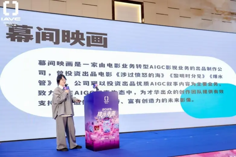 (图注:幕间映画AIGC制片人王昱进行主题演讲)