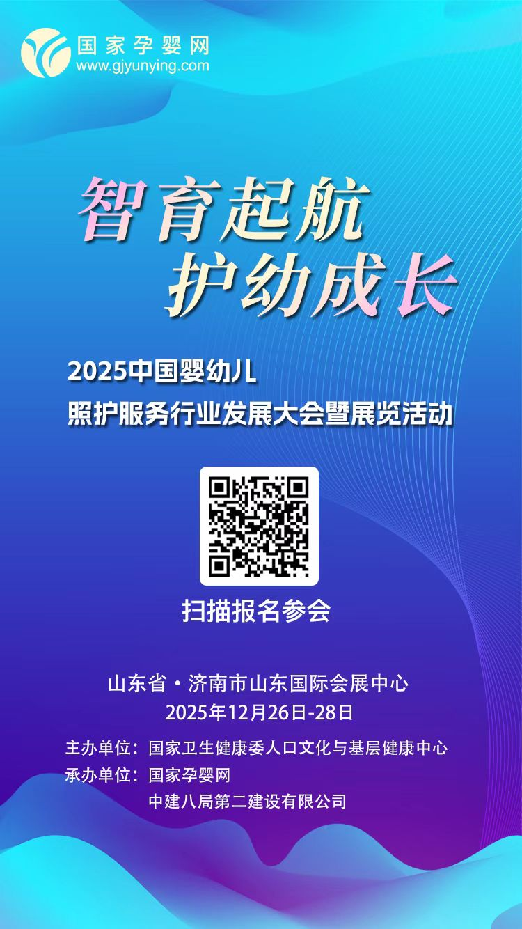 由国家卫生健康委人口文化与基层健康中心主办,国家孕婴网、中建八局第二建设有限公司承办,国家卫生健康委能力建设和继续教育中心(国家卫生健康委党校)、山东省卫生健康委、济南市卫生健康委、中华慈善总会、中国人口学会托育服务分会、山东省托育服务协会联合协办的2025中国婴幼儿照护服务行业发展大会暨展览活动,定于12月26日至28日在山东省济南市山东国际会展中心举办。本届活动以“智育启航·护幼成长”为主题,汇聚行业各方力量,解读行业相关政策,交流行业发展经验,展望行业发展前景,共同推动婴幼儿照护服务行业高质量发展,筑牢婴幼儿健康成长保障防线。