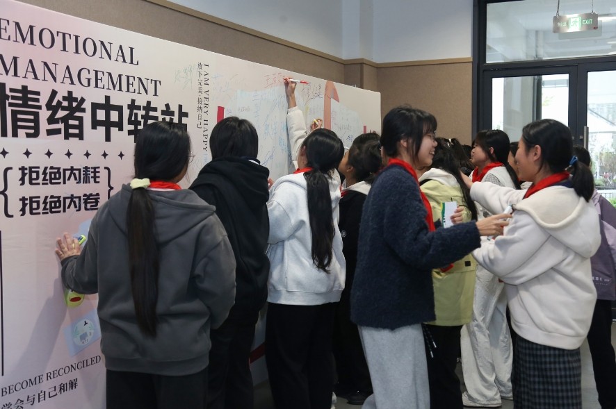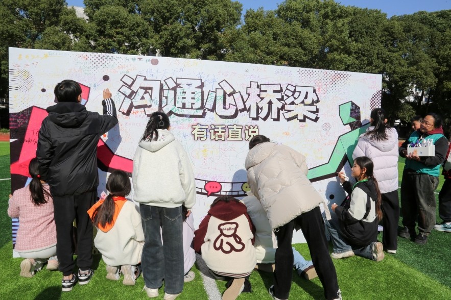 活动聚焦压力管理、沟通表达与情绪管理三大主题,助力青少年健康成长。在泗港实验学校,开展了“成长不怕难”主题课程,通过抗挫训练营与拼图体验引导学生释放压力;在第七中学,开展了“沟通的桥梁”主题课程,设置情绪脸谱DIY、团队传声游戏,助力青少年提升表达协作能力;在第八中学,以“解锁你的小情绪”为题的课程,引导参与者通过情绪小屋涂鸦与减压运动,在轻松氛围中探索心灵成长,掌握心理调适技能。