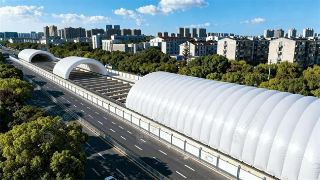 气肋气膜的应用价值远不止于文旅领域。在工业、文体等场景中,均展现出同样出色的适应性。凭借可达近100米的超大跨度无柱空间,可轻松应对文体场馆、移动厂房、临时仓储、环保封闭作业等需求。