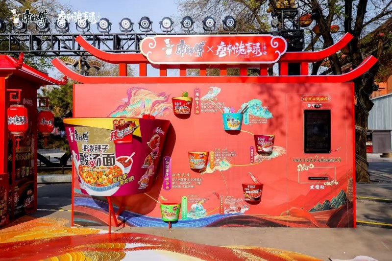 康师傅在产品层面与辣文化深度绑定,通过沉浸式场景让游客在旅游中触摸文化、在体验中产生消费,既为大唐不夜城丰富了文旅业态,也让西安油泼辣子等本土饮食文化借助IP语境走向全国,更探索出 “文化 IP + 城市地标 + 地域饮食” 的融合新路径。