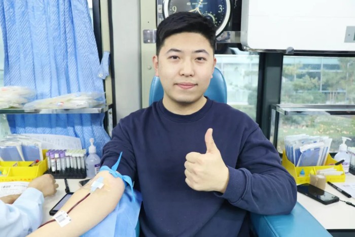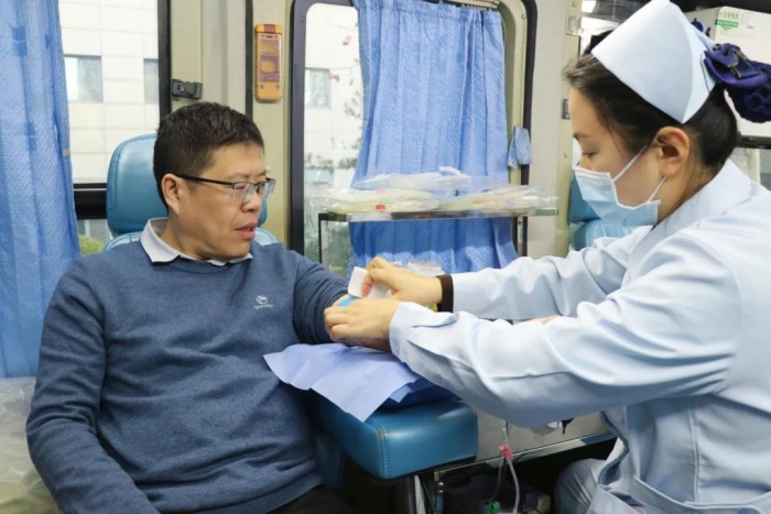 “作为一名党员,能通过捐献热血的方式为社会贡献一份力量,我感到很自豪。”市卫生健康委三级主任科员齐峰笑着说,这是他第二次参与无偿献血,他希望有更多的人积极参与到无偿献血中来,用点滴热血为生命续航。