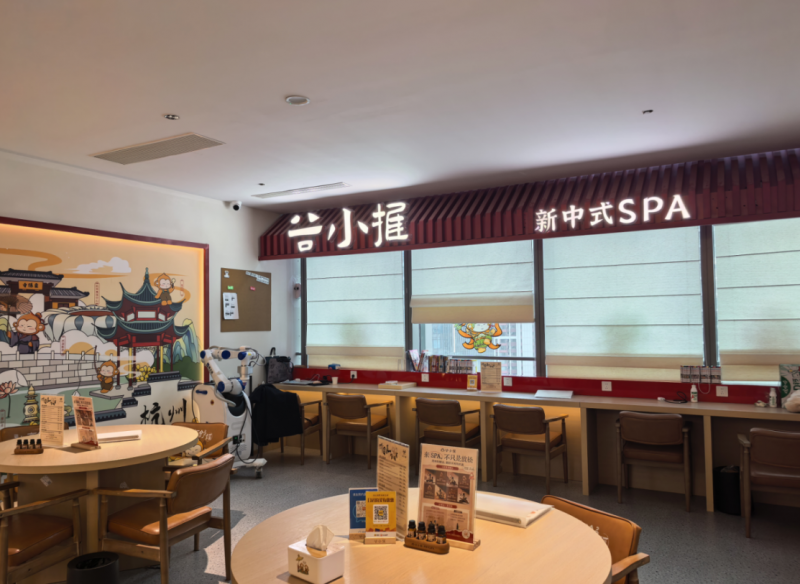 在约100平米的新中式空间中,顾客既能享受专业推拿、草本SPA带来的身心放松,又能在茶饮区小坐、拍照、交流,让养生自然融入日常生活。这样的场景更轻、更自在,也更符合年轻人的节奏。