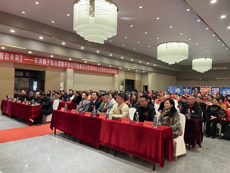 农夫铺子集团董事会主席兼CEO袁道红、副董事长兼总经理李林祥,集团数智健康业务生态群副总裁、红盟事业部总裁田野,与四川省新溪源生物科技发展有限公司董事长高安友等双方核心管理层出席活动。集团华中、西南、东北、西北、华北、华东、华南七大区负责人齐发贺电,华中大区总裁周伯福、西南大区总裁侯俊杰更亲临现场助阵。农夫铺子四川省公司董事长王晓兰、总经理屈雷,绵阳、眉山、龙泉驿等省内核心区域公司负责人何刚、白梅容、冷雪容、叶永琼等一同参会,展现出集团自上而下对此次战略升级的高度协同与鼎力支持。