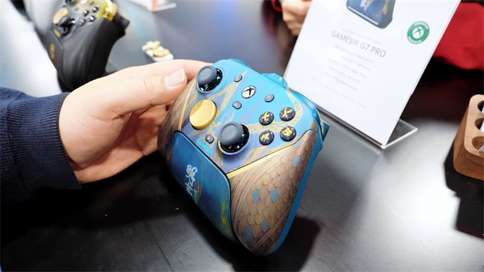 深度生态合作与游戏文化联动:作为微软全球合作伙伴,盖世小鸡全面展示了其丰富的微软Xbox授权手柄产品线。同时,与热门游戏《明末:渊虚之羽》、《绝区零》等推出的联名款产品,深度融合游戏文化元素,成为现场潮流热点。