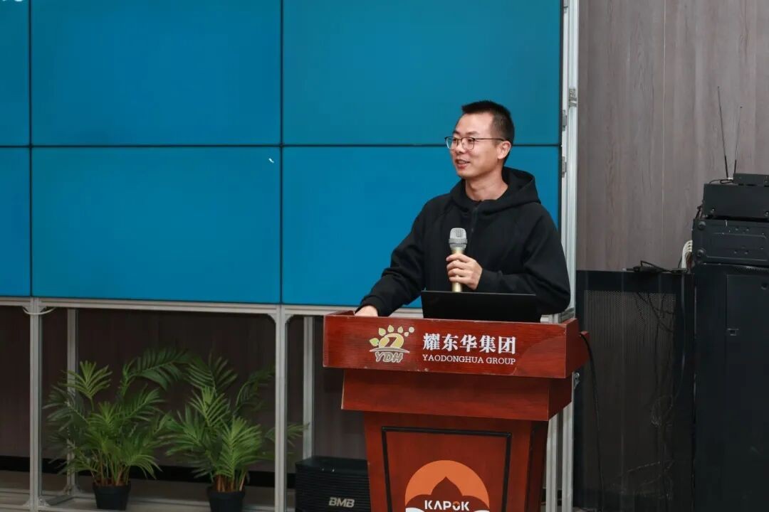 参观结束后,一场别开生面的交流座谈会随之举行。耀东华集团质量服务部经理胡硕飞首先系统介绍了耀东华集团的发展历程与“红棉花”品牌的创新内核;随后,IT部经理袁利华深入浅出地解密了支撑智能制造基地高效运行的数字化规则与系统逻辑;最后,人资行政部总监助理司萌萌向同学们详细分享了集团针对高校毕业生的多元化人才培养路径,描绘了清晰的职业成长蓝图。