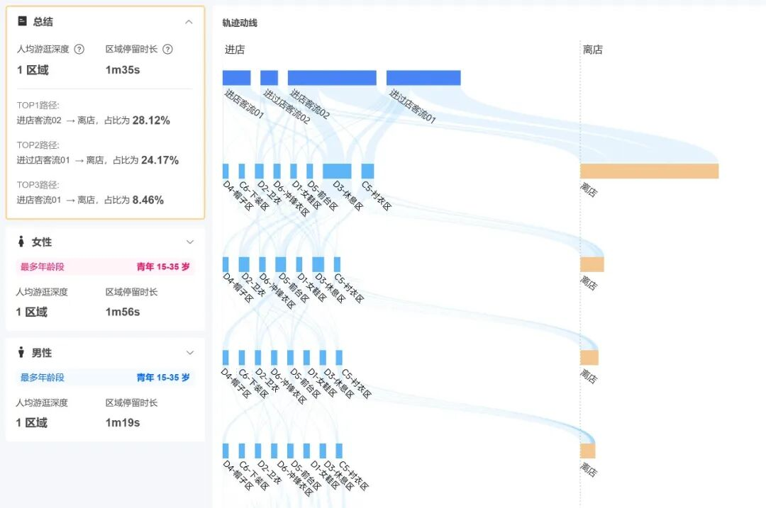 洞察消费心智,是品牌把握趋势、实现增长的关键。如何洞察消费者这件事也可以交给AI,比如万店掌AI客流分析不仅能统计过店、到店客流,更可通过游逛轨迹、触摸分析等功能,了解顾客行为偏好,明确高频游逛区域与重点关注产品,助力品牌预判爆款、优化门店布局。如某便利店品牌凭借该系统发现,顾客在饮料区停留最久且对特定款式触摸频次最高,遂将该爆款置于店内C位货架并加大备货,最终推动门店业绩增长。