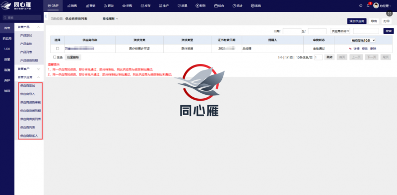 合规与运营融合是医疗器械行业进销存一体化的独特要求。不同于普通行业,医疗器械行业的进销存管理必须嵌入合规管控节点,实现高效运营与合规管控的同步推进。一体化系统可将合规要求融入业务全流程,例如,供应商准入环节自动校验资质有效期与合规性,杜绝不合规供应商合作;产品入库环节自动记录批次、效期信息,确保可追溯;销售出库环节自动核查产品流向与终端资质,规避流通风险;系统自动留存各环节操作记录,为合规核查提供便捷支撑,让合规管理从“事后整改”转向“事前预防、事中管控”。