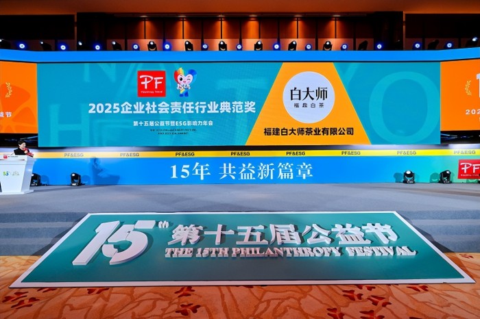 第十五届公益节于2026年1月22日在北京举行。经提名推荐,评委会审议,白茶品牌白大师获“2025企业社会责任行业典范奖”。
