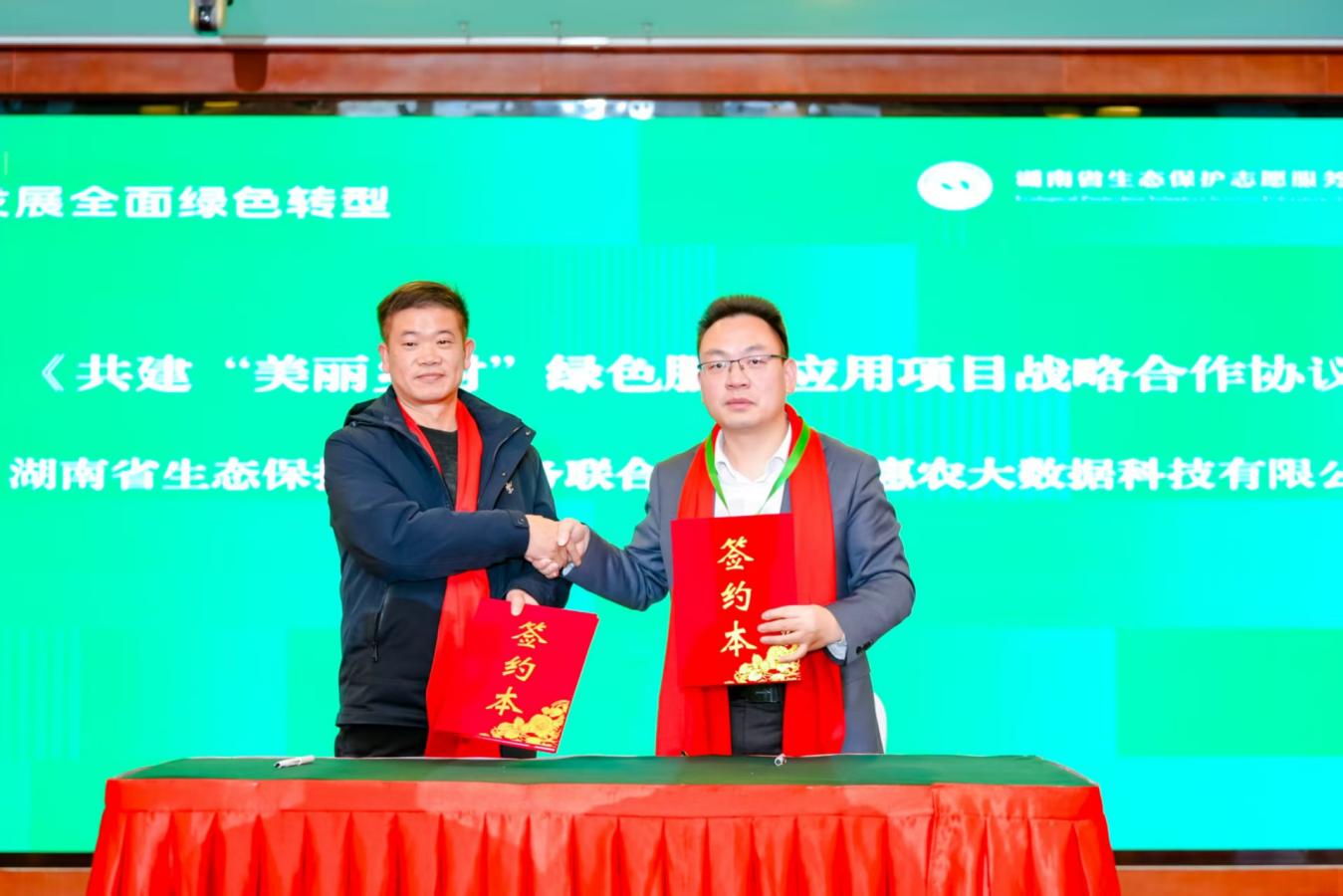 活动现场,湖南省生态保护志愿服务联合会还与湖南惠农大数据科技有限公司签署了合作协议,共同探索绿色产品经济与志愿服务融合路径;湖南环境公益律师行动网络中心与华南环境快速反应项目中心签署了生态环境公益保护战略合作协议,整合律师法律专业力量与社会组织环境调查优势,构建“法律监督+生态调查”的立体环境保护模式。