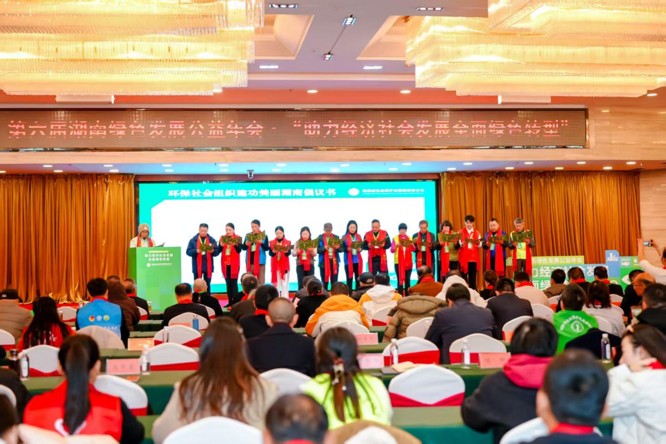 1月24日,以“助力经济社会发展全面绿色转型”为主题的第六届湖南绿色发展公益年会在长沙举行。年会向社会发出“争当绿色理念的传播者、绿色发展的助推者、环境治理的监督者、公众参与的动员者、自身建设的示范者”的倡议,号召全省环保社会组织共同投身绿色转型实践。湖南知名文旅博主“乐小牛”受邀担任全省环保类社会组织绿色推广大使,并与来自14个市州环保社会组织及高校环保社团代表共同发出了环保社会组织建功美丽湖南建设倡议。