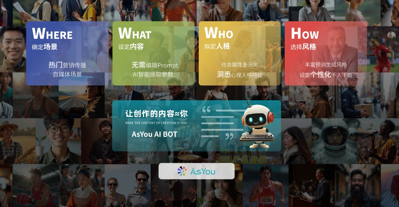 由云捷亮数联合创始人马妍女士主导,基于15年以上市场研究和消费者洞察经验,携原Yoo club(悠族驾到)初创团队加持联手打造了全新AI创作平台产品:As you AI。