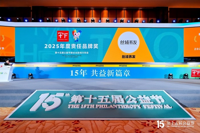 近日,第十五届公益节暨2025 ESG影响力年会在北京隆重举行。本届大会主题为“15年,共益新篇章”,温暖回顾公益节十五年发展历程,全面展现公益实践成果,携手各界力量共创美好未来。丝域养发于第十五届公益节暨ESG影响力年会上,荣膺 “2025年度公益案例”与 “责任品牌奖” 双项殊荣。