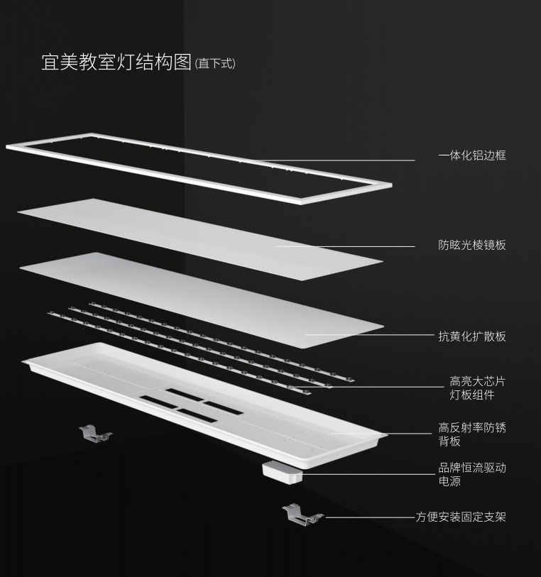 采用高显色LED芯片与无频闪驱动电源,从源头保障光健康;