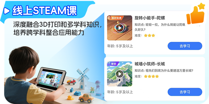 科学实践,实现跨学科融合。 配套的线上STEAM课程打破了学科壁垒,将数学计算、物理结构、工程设计与艺术审美融为一体,真正贯彻了跨学科整合应用的教育理念,培养解决真实问题的能力。