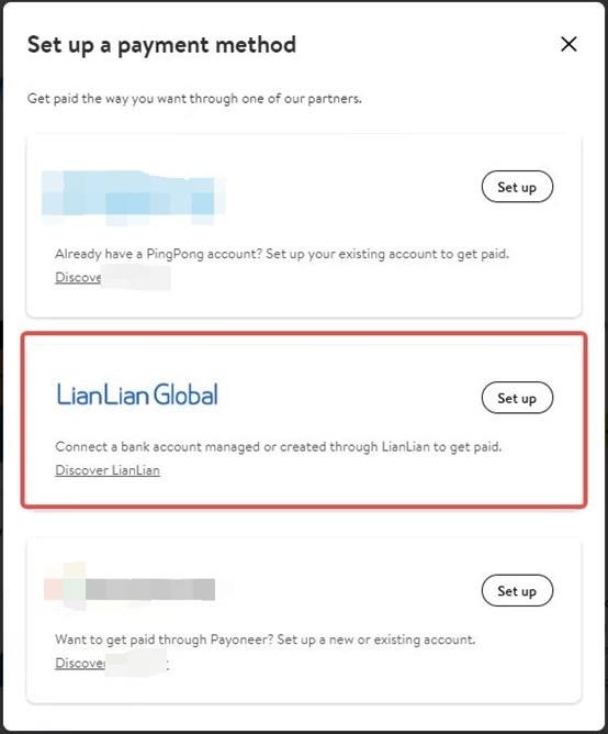 选择“LianLianGlobal”进行收款账户的填写及绑定。