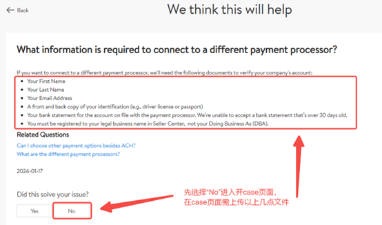 4.填写信息与材料:请在Case描述中填写“I need to change my payment processor”,并上传文件。同时,建议您准备以下文件并在该页面上传(具体所需换绑材料请以沃尔玛回复为准):