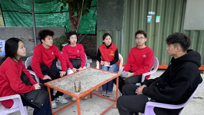 实践队队员们在盐田温泉体验区与负责人交流座谈。冯一扬 供图