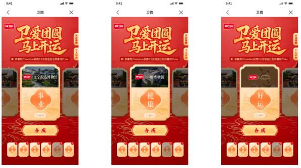 线上,AR视觉效果与卡片设计极具美感,用户自发晒图分享,形成#卫爱团圆马上开运#话题传播;