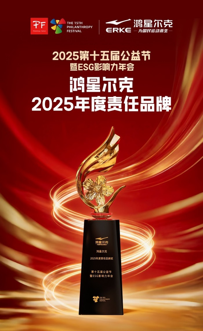 鸿星尔克荣膺“2025年度责任品牌”,是鸿星尔克以行动向公众递交的答卷——公益是品牌前行的本心底色。未来,鸿星尔克将继续以“为国民运动而生”为初心,在ESG框架下深化公益实践,让每一件产品都成为善意的载体,用实际行动诠释国货品牌的责任与担当,让更多的国货公益力量被看见,书写国民品牌的责任担当。