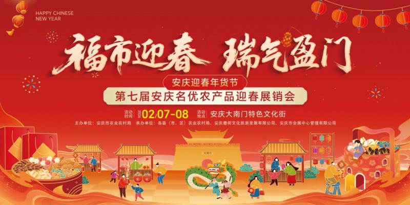 为深入推进农商文旅融合发展,营造浓厚春节消费氛围,助力优质农产品展示展销,由安庆市农业农村局主办的安庆迎春年货节暨第七届安庆名优农产品迎春展销会,将于2026年2月7日至8日在安庆大南门特色文化街区举办。