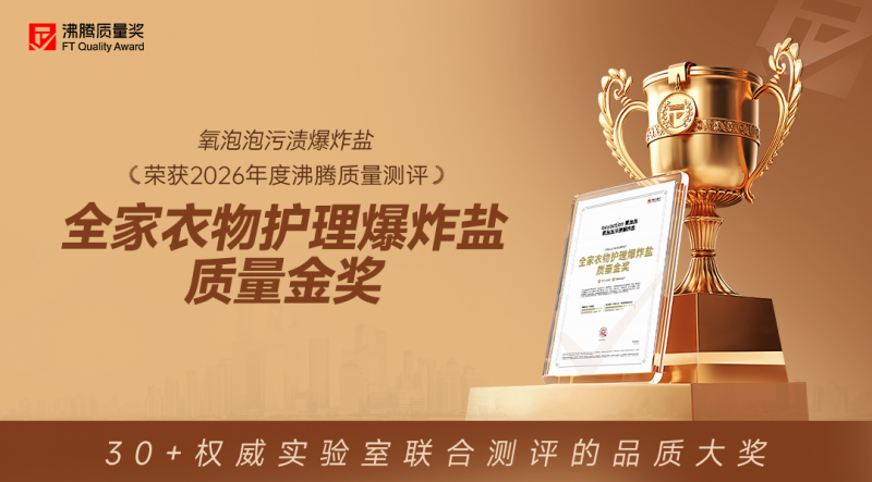 “沸腾质量奖”以其严谨、客观的测评体系在消费品领域享有盛誉。氧泡泡污渍爆炸盐能够在众多同类产品中脱颖而出,荣获“全家衣物护理爆炸盐质量金奖”,是市场对其综合性能的最佳肯定。