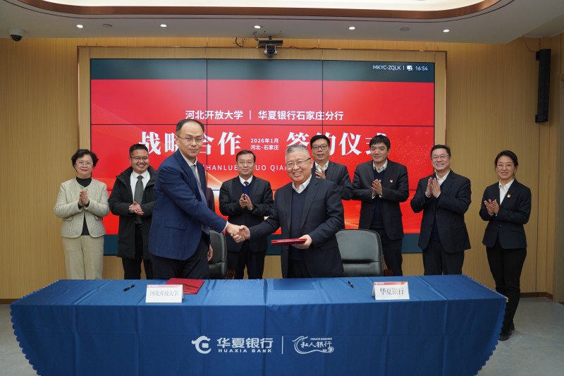 在国家“深入实施教育数字化战略”与河北省《加快推进教育数字化实施方案(2025-2027年)》的双重指引下,一场破解终身教育发展瓶颈的跨界合作于燕赵大地落地生根。2026年1月29日下午,华夏银行石家庄分行与河北开放大学在分行四楼会议室隆重举行战略合作签约仪式,以“党建共建、资源共享、人才共育、发展共赢”为纲领,携手构建“金融+教育”深度融合的创新生态,为河北终身教育体系建设与人力资本支撑强省建设注入强劲动能。