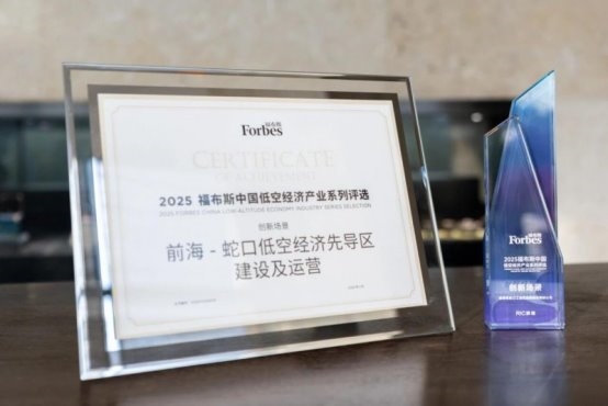 前海-蛇口低空经济先导区获评“2025福布斯中国低空经济产业系列评选”创新场景奖。