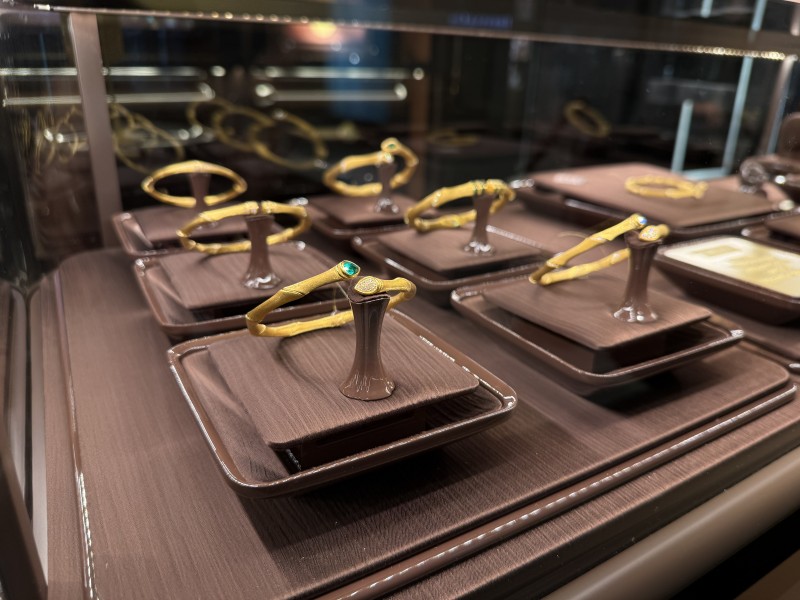 第二重密码,藏在极致工艺所构建的国际对话能力中。君佩将自身定位为“珠宝级黄金品牌”,其底气来源于严苛的工艺标准。丝绒刻丝工艺要求匠师精准把控推刀力度与角度,以呈现丝绒般质感;无痕嵌丝与高珠级镶嵌均需高级匠师在40倍显微镜下凝神操作;独创的镜砂工艺通过多目砂纸反复打磨与极细镜面喷砂,才成就独特的皇家金色。这些高珠级标准——显微镜下的精细、国际化的镶嵌技法、对光泽与触感的极致追求——本身就是一套全球高端珠宝界通行的品质语言。它无声却有力地建立起跨越文化的信任:这里的黄金,拥有与顶级珠宝同等的美学与工艺尊严。