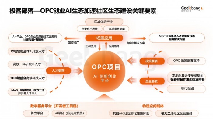 ·协作网络连接器:依托极客邦科技深厚的国内外社区连接能力,汇聚朝阳区辐射全国甚至全球的各类创新创业AI生态资源,助力OPC创业加速发展。
